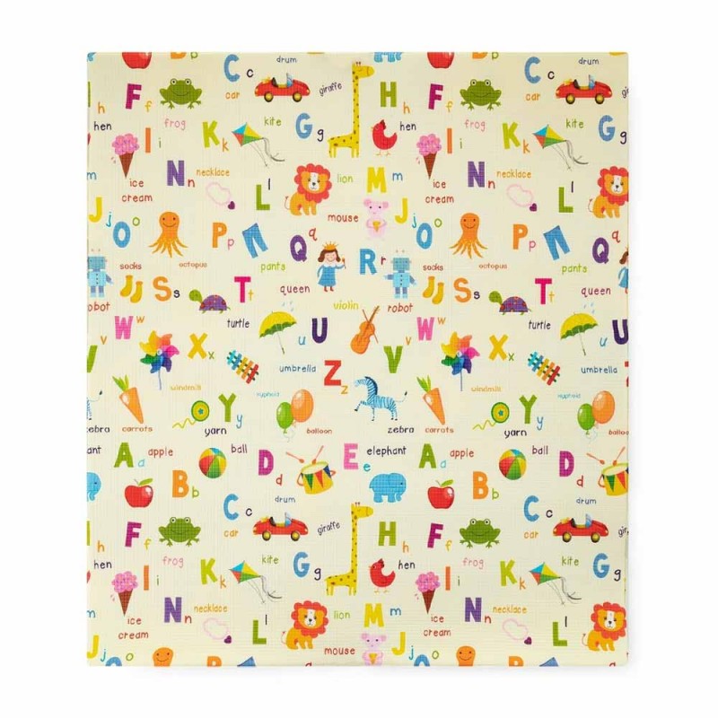 Dvostranska: na eni strani je univerzalni geometrijski vzorec, na drugi pa vzorec z živalmi, cesto in reko, ki spodbuja malčka k igri.